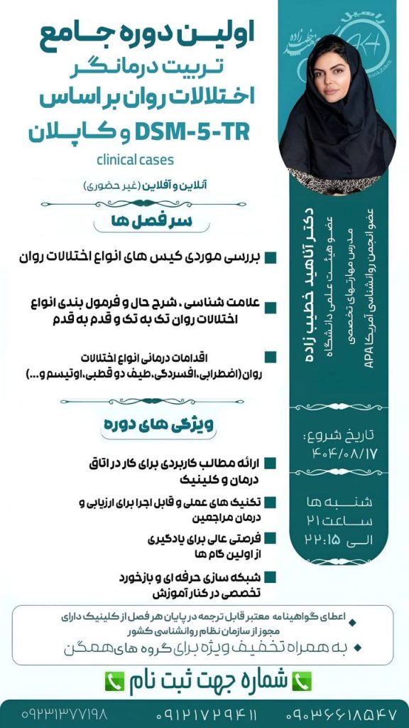 اولین دوره جامع تربیت درمانگر اختلالات روان (بر اساس DSM-5-TR و کابلان)